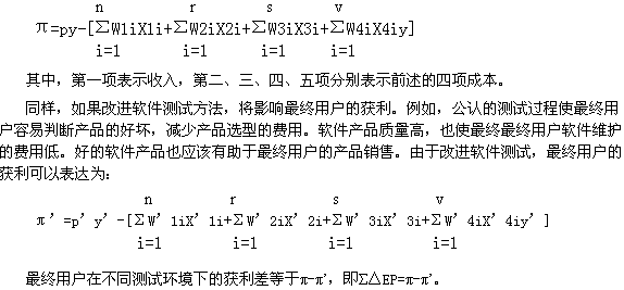 三、软件缺陷的影响的经济学模型 如前所述,测试的不当性是相对测试的可改进性而言的。所以,一般理解不当测试的成本等同于改进后测试的获利。 不当测试的经济学影响可以表征为不当测试的获利和改进后测试的获利差,即: