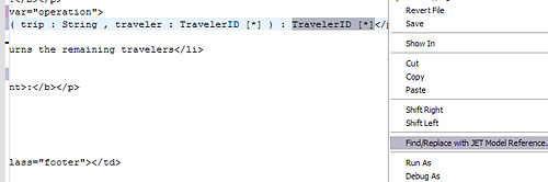默认条件下, Find/Replace 操作会插在一个 XPath 表达行中:$returns/@declaration。但是,在模板的这个点上,没有$returns的当前值,只有$operation的当前值。