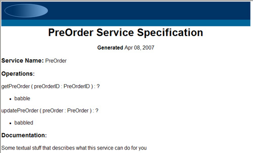 Software Services 模型定义的一系列服务。我们已经创建了此类的一系列文档,它同时也是我们的模型到文档转换要产生的文档的例子。这系列的文档叫做一个例子。对于本教程而言,它就是是假设的前提条件。