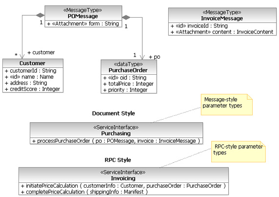 SoaML MessageTypes POMessage 和 InvoiceMessage 输入的。相反,Invoicing