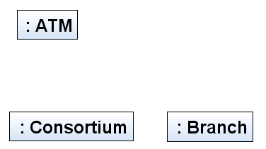 在创建从 ATM 至 Branch 的链接时,请由 ATM 生命线向右水平拉出链接线,并在到达 Branch 生命线正上方时单击一下鼠标。这样便会在链接线上放置一个顶点,然后再垂直向下绘制链接以到达 Branch 生命线。 |