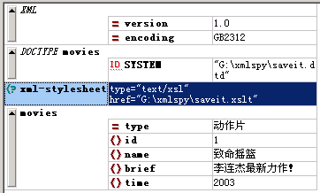 XML Spy是Icon Information System开发的支持XML,XSL,XSLT,DTD,Schema等等多种文件格式的编辑器。它可以将XML展示为完美的树型结构,可以方便的使用各种HTML/XML/XSLT标记,使用它可以大大节约我们的开发时间,不必把大量的时间浪费在代码的输入上。下面我们通过一个存储电影信息的实例来学习一下XML