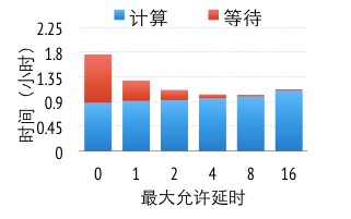 图8展示了在广告点击预测中(细节描述见后文),不同的一致性模型下得到同样精度参数模型所花费的时间。当使用顺序一致性模型时(0延时),一半的运行时间花费在等待上。当我们逐渐放松数据一致性要求,可以看到计算时间随着最大允许的延时缓慢上升,这是由于数据一致性减慢了算法的收敛速度,但由于能有效地隐藏网络通信开销,从而明显降低了等待时间。在这个实验里,最佳平衡点是最大延时为8。