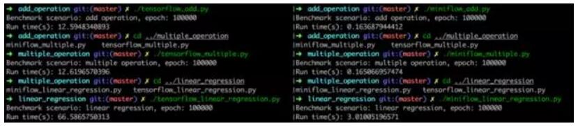 Benchmark 测试中发现,纯 Python 实现的项目在线性回归模型训练中比 TensorFlow