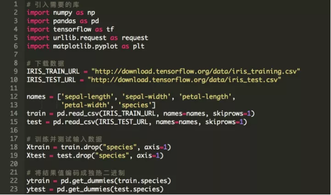 一种植物可以属于三种可能的输出类型之一:setosa,virginica和versicolor。 我们首先从TensorFlow的网站下载数据
