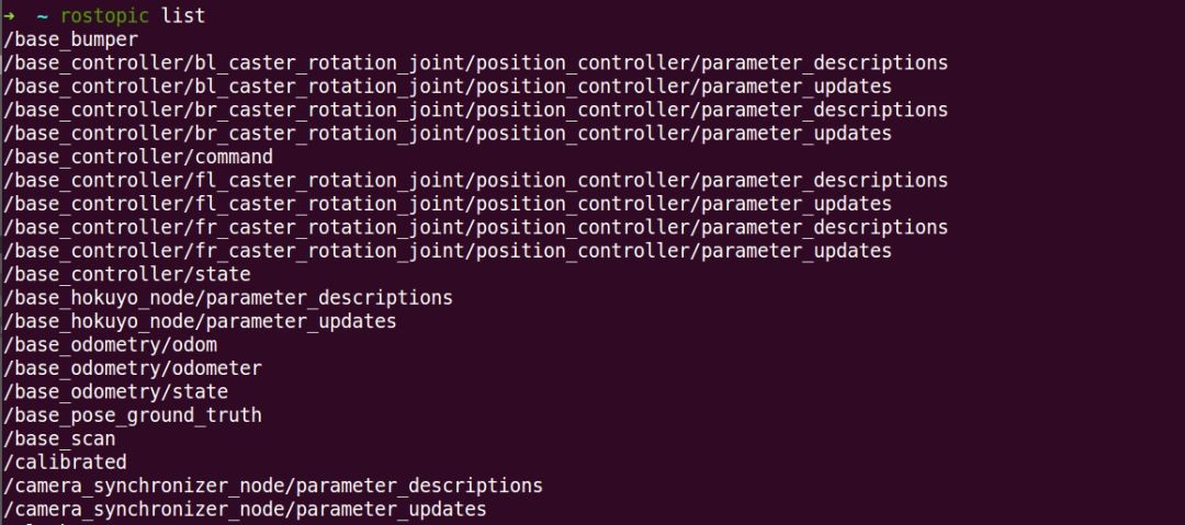 查看当前系统中的话题列表,会看到众多话题已经发布或者等待订阅,这就是PR2机器人仿真器提供给用户的接口,我们可以基于这些接口实现很多功能。