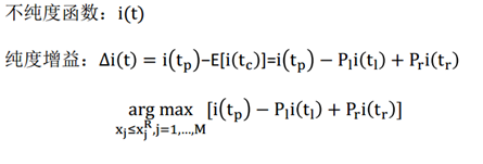 如何分裂数据也即分裂准则是什么?依然是通过不纯度来分裂数据的,通过比较划分前后的不纯度值,来确定如何分裂。