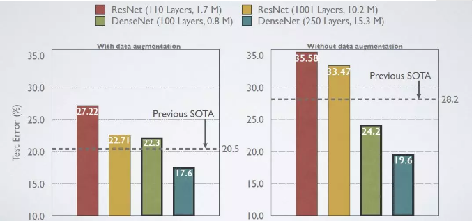 图8 在CIFAR-100数据集上ResNet vs DenseNet