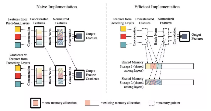 要注意的一点是,如果实现方式不当的话,DenseNet可能耗费很多GPU显存,一种高效的实现如图10所示,更多细节可以见这篇论文Memory-Efficient