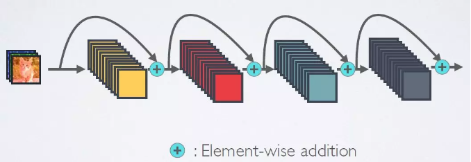 图1 ResNet网络的短路连接机制(其中+代表的是元素级相加操作)