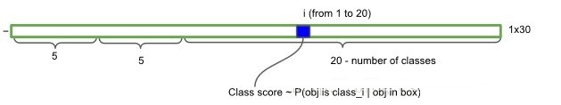 x,y,w,h,confidence,5个预测值),同时C=20(PASCAL数据集中有20个类别)。