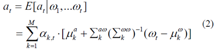 αk,t表示混合系数,并且被计算为处于模式mt = k的概率[3]