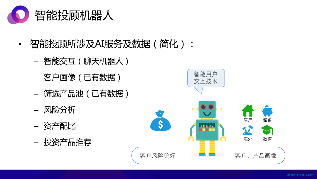 AI 中台如何解决实际业务中的智能化需求。(由于智能投顾机器人是一个比较大的解决方案,此处做了适当抽象和缩减。)