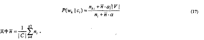 引入单词量相关的平滑因子,p仍旧为1/|V|,而等效样本数m则取平均每类包含的单词量的α倍(α<<1)得到: