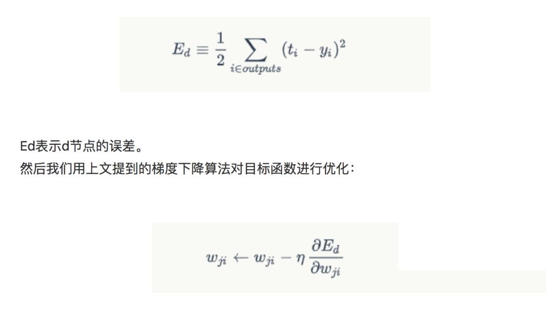 我们取网络所有输出层节点的误差平方和作为目标函数: