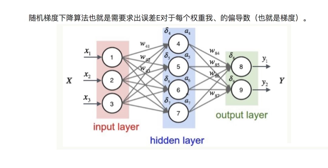 至此,我们已经推导出了反向传播算法。需要注意的是,我们刚刚推导出的训练规则是根据激活函数是sigmoid函数、平方和误差、全连接网络、随机梯度下降优化算法。如果激活函数不同、误差计算方式不同、网络连接结构不同、优化算法不同,则具体的训练规则也会不一样。但是无论怎样,训练规则的推导方式都是一样的,应用链式求导法则进行推导即可。