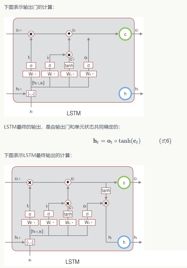 上图仅仅是一个示意图,我们可以看出,在t时刻,LSTM的输入有三个:当前时刻网络的输入值x、上一时刻LSTM的输出值H、以及上一时刻的单元状态;LSTM的输出有两个:当前时刻LSTM输出值h、和当前时刻的单元状态c。