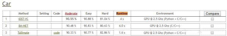 detection and tracking对实时性的要求就很高。下面我们基于KITTI数据集看看一些业界领先水平的方法: