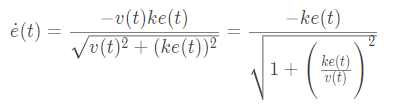 因此横向误差指数收敛于e(t)=0e(t) = 0e(t)=0,参数kkk决定了收敛速度。对于任意横向误差,微分方程都单调的收敛到0。