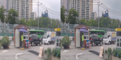 左图: GOPRO 测试图像,右图:GAN 输出结果