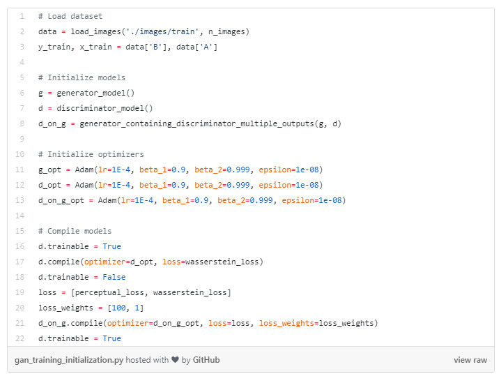 最后一步就是建立完整的模型。这个GAN的一个特点就是输入的是真实图片而不是噪声 。因此我们就有了一个对生成器输出的直接反馈。