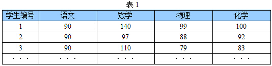 下表1是某些学生的语文、数学、物理、化学成绩统计: