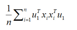 中心化后的数据在第一主轴u1方向上分布散的最开,也就是说在u1方向上的投影的绝对值之和最大(也可以说方差最大),计算投影的方法上面已经阐述,就是将x与u1做内积,由于只需要求u1的方向,所以设u1也是单位向量。