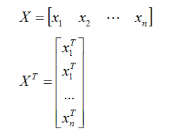 学过矩阵代数的同学可能已经发现了,上式括号里面求和后的结果,就相当于一个大矩阵乘以自身的转置,其中,这个大矩阵的形式如下:
