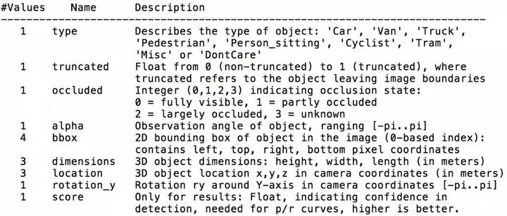 目前,3D目标检测的数据集主要包含Jura、Pascal3D+、LINEMOD、KITTI等,以KITTI数据集为例,如图Fig.7是KITTI数据集中对于一个3D障碍物的标注: