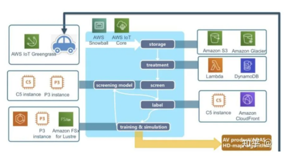 如图是国内自动驾驶公司Momenta基于亚马逊AWS建立的系统架构实例图: