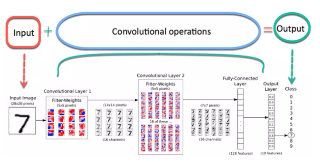 在卷积之后,还有一个称为池化的操作。因此,在这个链中,卷积和池化依次应用于数据以从数据中提取一些特征。 在连续的卷积层和池化层之后,数据被展平成一个前馈神经网络,也称为多层感知器。