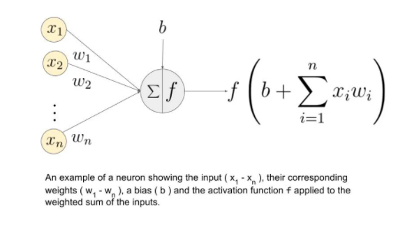 假设我们有值a1、a2、a3、a4?4作为输入,权重为w1、w2、w3、w4作为隐藏层神经元??之一的输入,那么加权和表示为