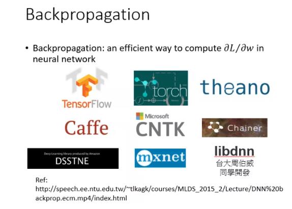 在神经网络训练中,我们需要将计算得到的损失向前传递,以计算各个神经元连接的权重对损失的影响大小,这里用到的方法就是反向传播。我们可以用很多框架来进行计算损失,比如说TensorFlow,Pytorch,theano等。