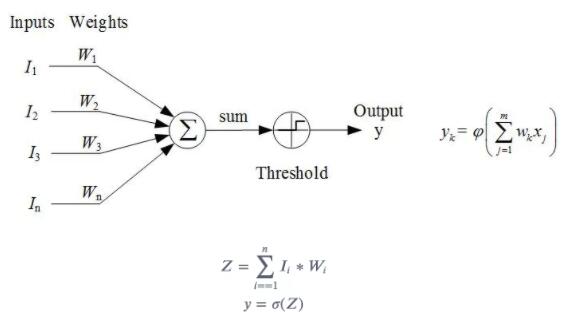 每个输入乘以其对应的权重,将结果求和,得到??;