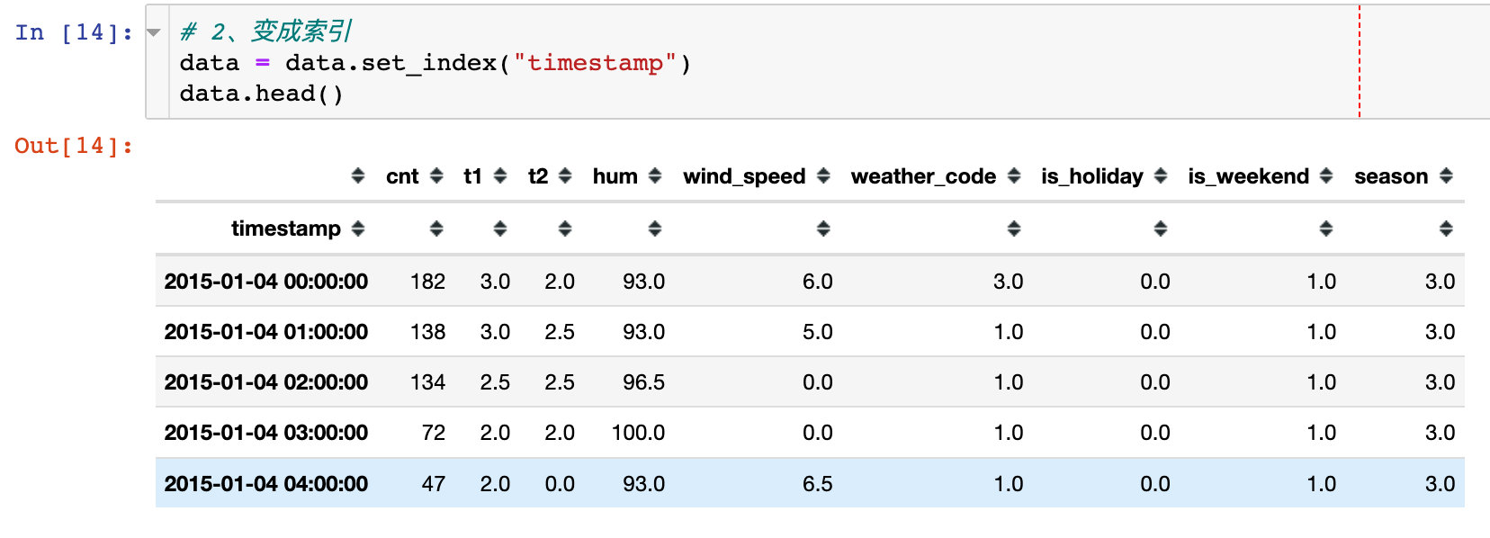 使用set_index方法将timestamp属性转成索引
