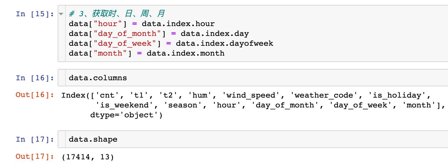 提取时间相关的多个信息,同时查看数据的shape