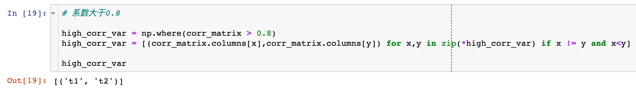 2、筛选两个属性之间的相关系数大于0.8