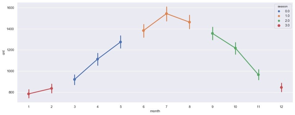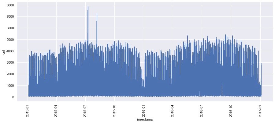 整体的需求量cnt随着时间变化的关系: