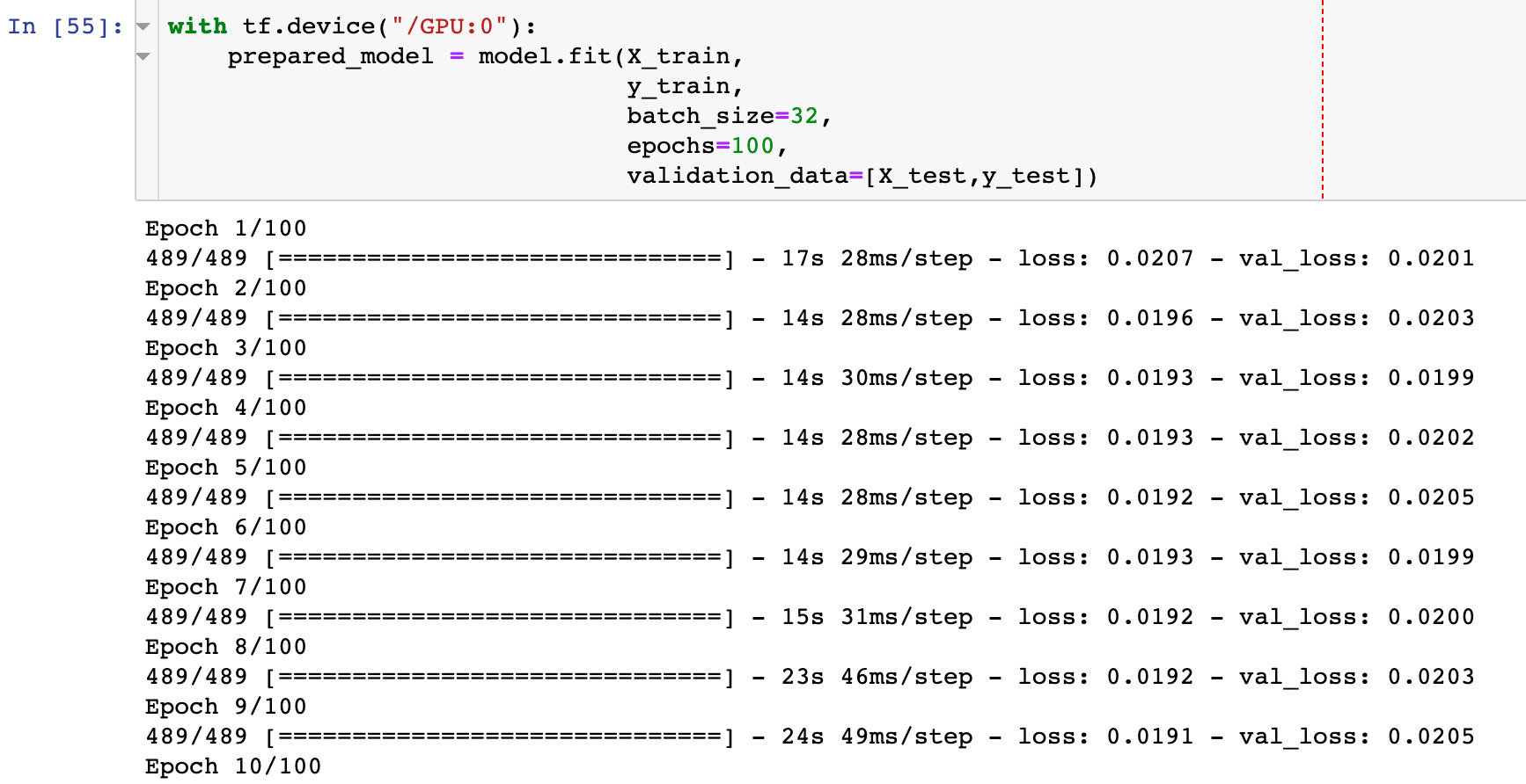 model.compile(optimizer="adam",loss="mse") # 优化器和损失函数选择 with tf.device('/GPU:0'):