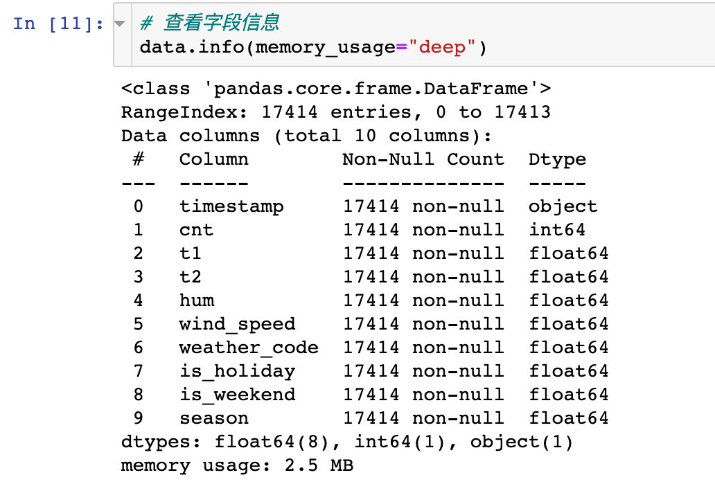 (17414, 10) # 2、数据字段类型