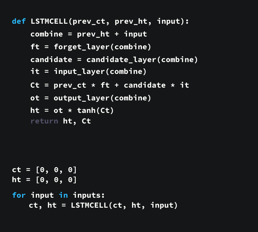 就是这些!LSTM网络的控制流程是几个张量操作和一个for循环。你可以使用隐藏状态进行预测。结合所有这些机制,LSTM能够选择在序列处理期间需要记住或忘记哪些信息。