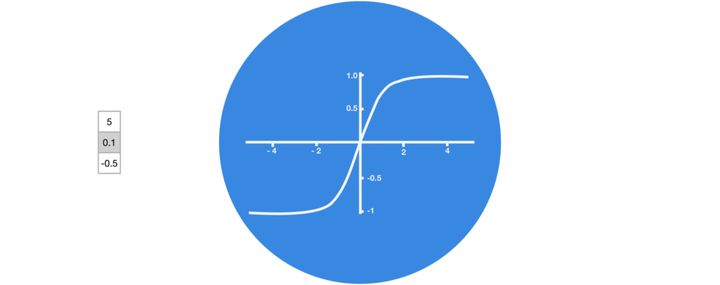 tanh函数确保值在-1和1之间,从而调节神经网络的输出。你可以看到上面的相同值通过tanh函数保持界限之间。