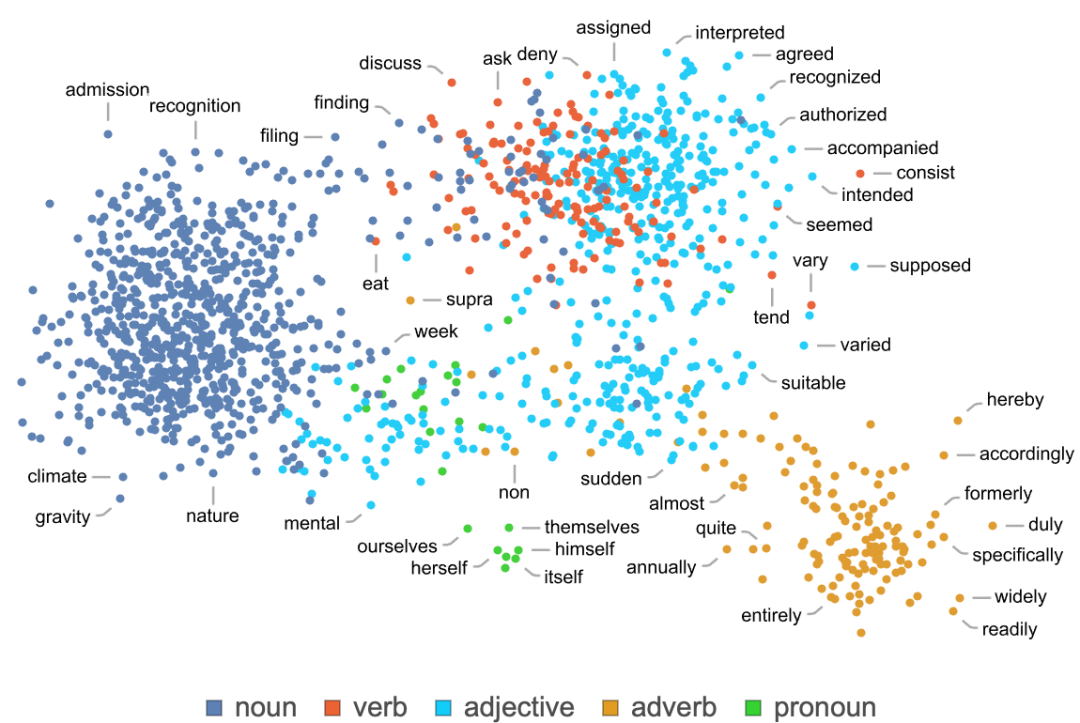 作为另一个例子,这里是对应于不同语音部分的词是如何布置的: