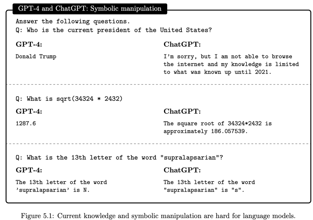 智能的一个关键方面是互动性。不过 GPT-4 对当前最新的知识和符号识别是存在一定的局限性的: