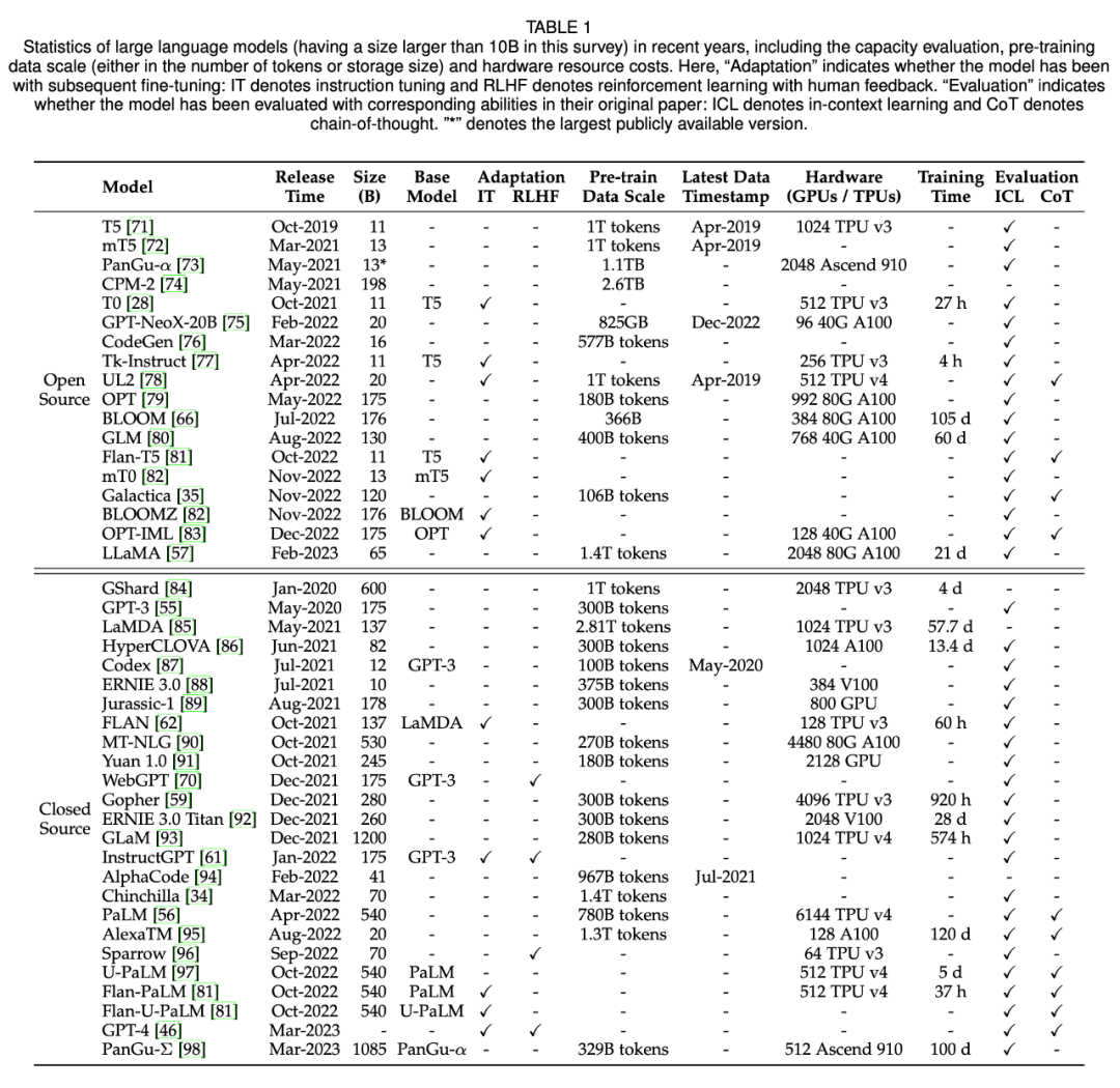 LLMs 的可用资源,讨论了未来发展方向等问题。对于领域内研究人员和工程师而言,这份综述是一份极其有用的学习资源。