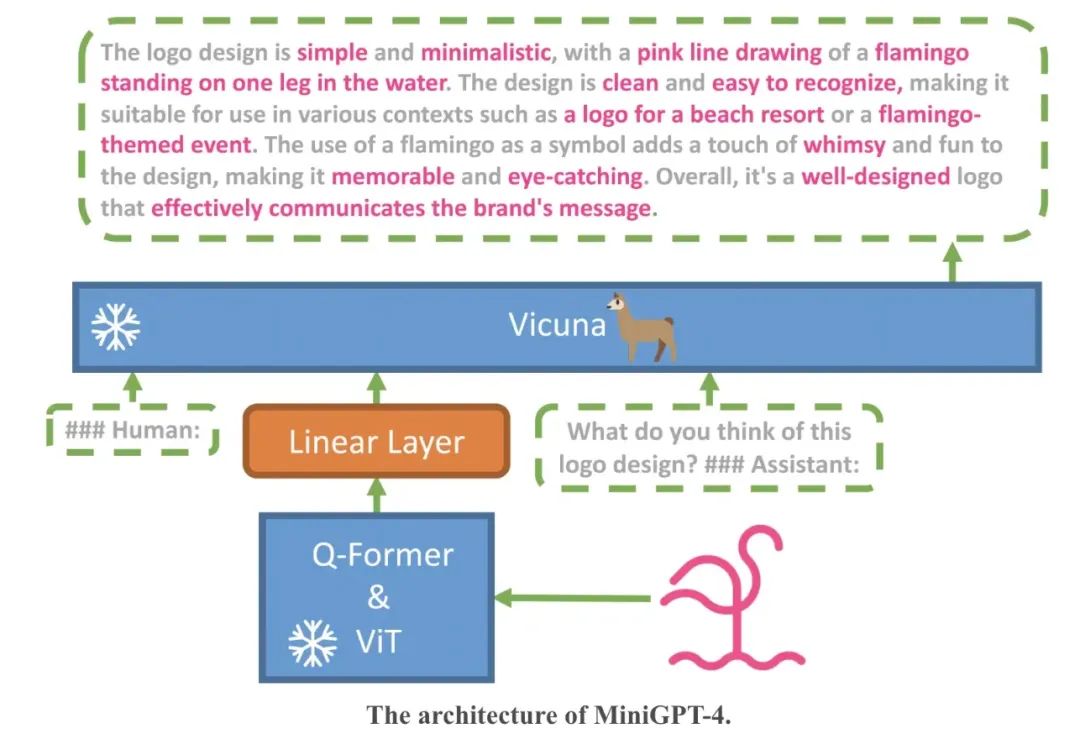 ChatGPT “媲美”的语言模型引入其中,这里采用了 Vicuna 作为语言模型,在视觉理解上,作者采用了和