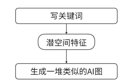 大家可以回想一下,我们AI绘图时,是不是先输入了一些关键词(prompt)。而这些关键词就会形成一堆潜空间特征,而最终AI通过vae编码器生成一大堆类似的AI图。