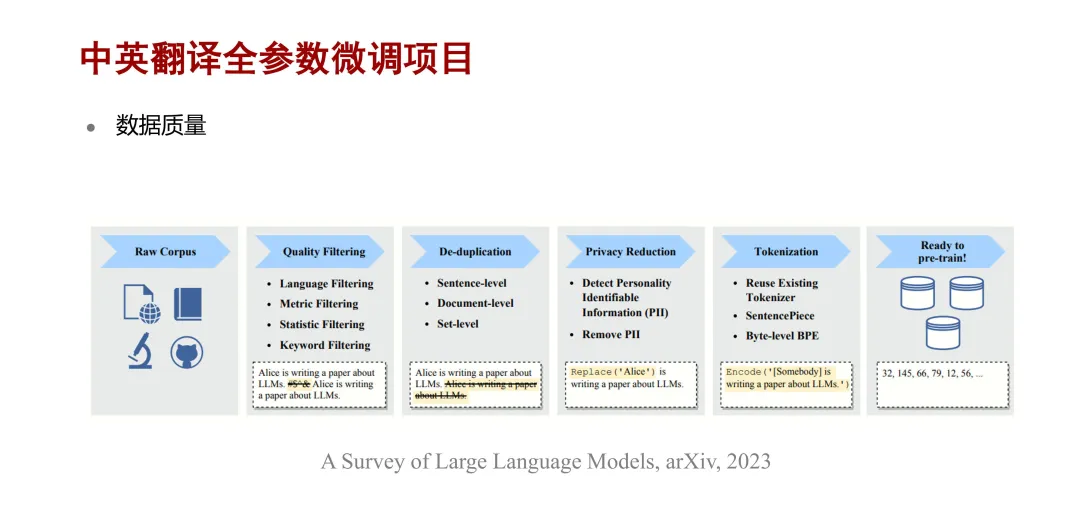 大模型作为基座,并使用中英双语数据来构建翻译指令,对基座大模型做全参数微调,以提升盘古大模型的中英翻译能力。并且在华为翻译和同城会议等业务场景做了落地。该项目主要在数据格式、数据质量、数据大小和模型大小这四个方面进行了实践。