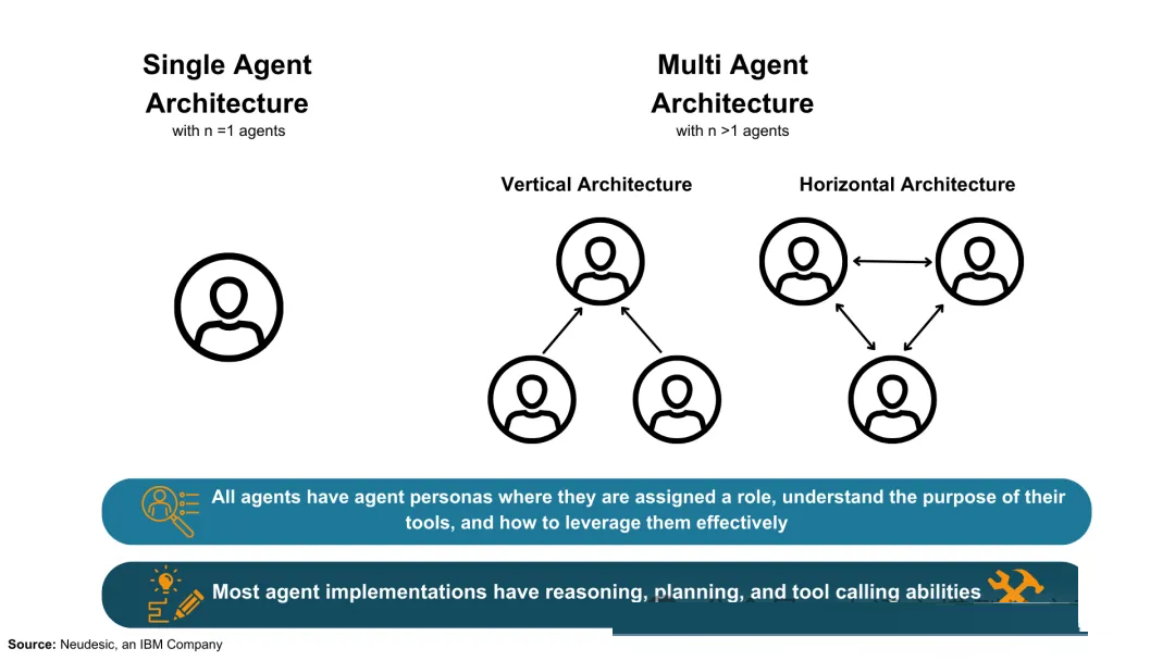 而Agent也从最开始的单一Agent,不断发展为多Agent的形式。单一Agent架构在问题边界清晰、且无需其他代理角色或用户反馈时表现优异。但是多Agent架构则在需要协作和多条独立执行路径时更具有优势。
