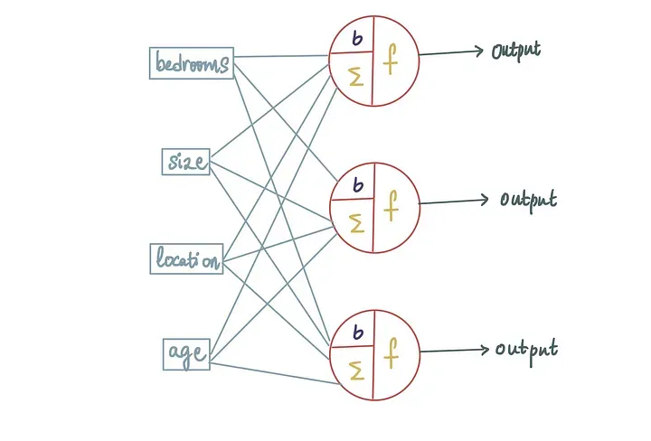在房屋定价的背景下,这些输入可以被视为不同的特征变量,而输出将是预测的房屋价格。